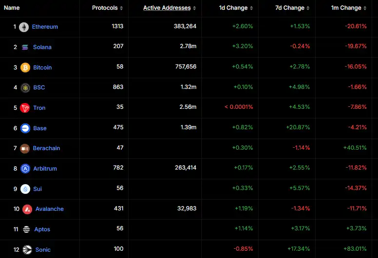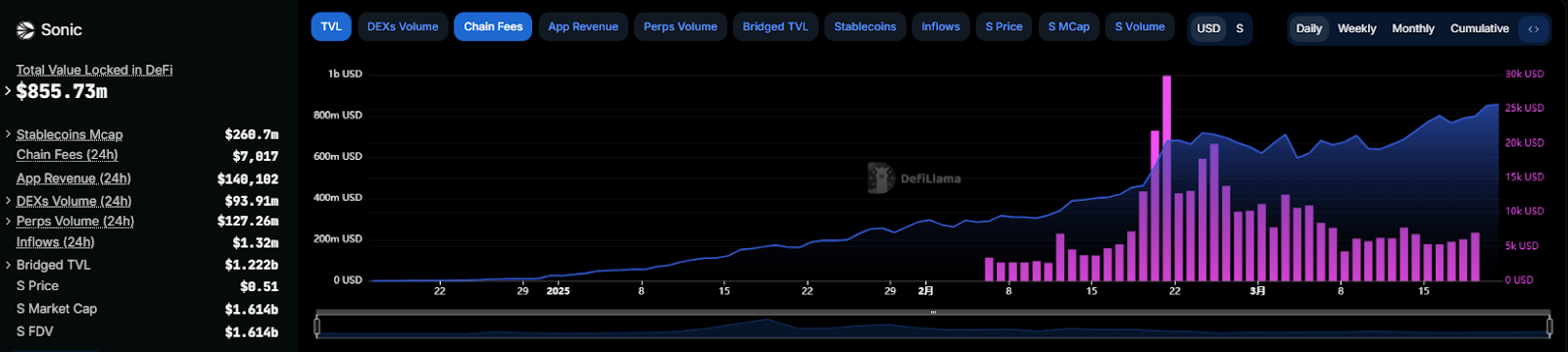 على مدار أكثر من شهر مضى، بينما كانت معظم الشبكات العامة عالقة في حالة جمود TVL، كانت Sonic تستقطب الأموال بمعدل 13 مليون دولار يوميًا. حتى تاريخ كتابة هذا التقرير، تجاوز TVL لشبكة Sonic 850 مليون دولار، محتلاً المرتبة 12 في تصنيف Layer1. وارتفع بنسبة تزيد عن 83% في الشهر الماضي، متفوقًا على جميع الشبكات العامة.