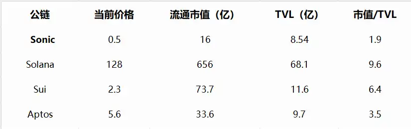 القيمة السوقية الحالية لـ $S هي 1.6 مليار دولار، ونسبة القيمة السوقية إلى TVL هي فقط 1.9، مما يجعلها في منطقة قيمة منخفضة بين Layer1 الرئيسية. بالمقارنة: