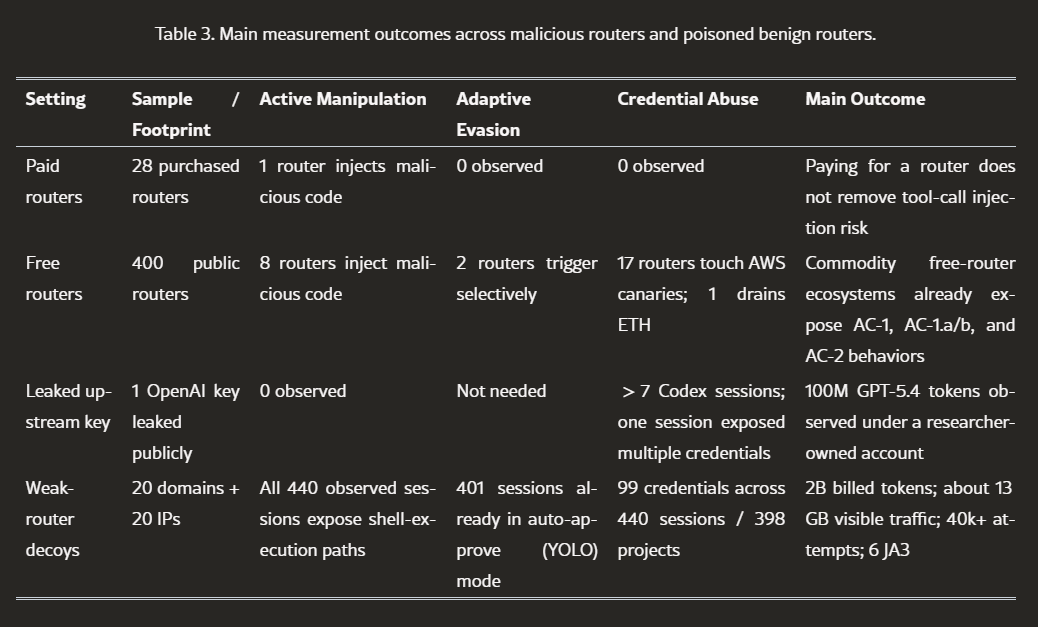وأشارت الدراسة إلى أن في مارس 2026، تعرض موجه الروتر المفتوح المصدر LiteLLM لهجوم تداخل الاعتمادية، مما سمح للمهاجمين بحقن برمجيات خبيثة في مسار الطلب، مما يبرز ضعف هذا الجزء.