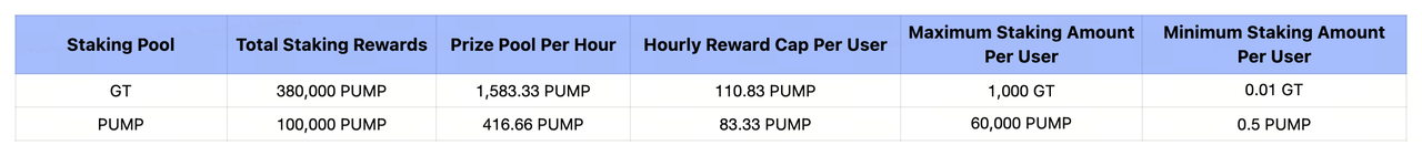 Comment participer: Connectez-vous à votre compte Gate et complétez Vérification d'identité → Naviguer vers Gate Launchpool → Détenir au moins 0.01 GT/ 0.5 PUMP → Cliquez sur "Stake".