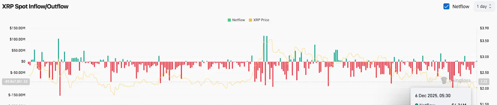 Bien que les entrées signalent normalement une accumulation, ce mouvement apparaît plus comme une réaction que comme une initiative, les traders tentant de stabiliser le prix plutôt que de miser sur une hausse.