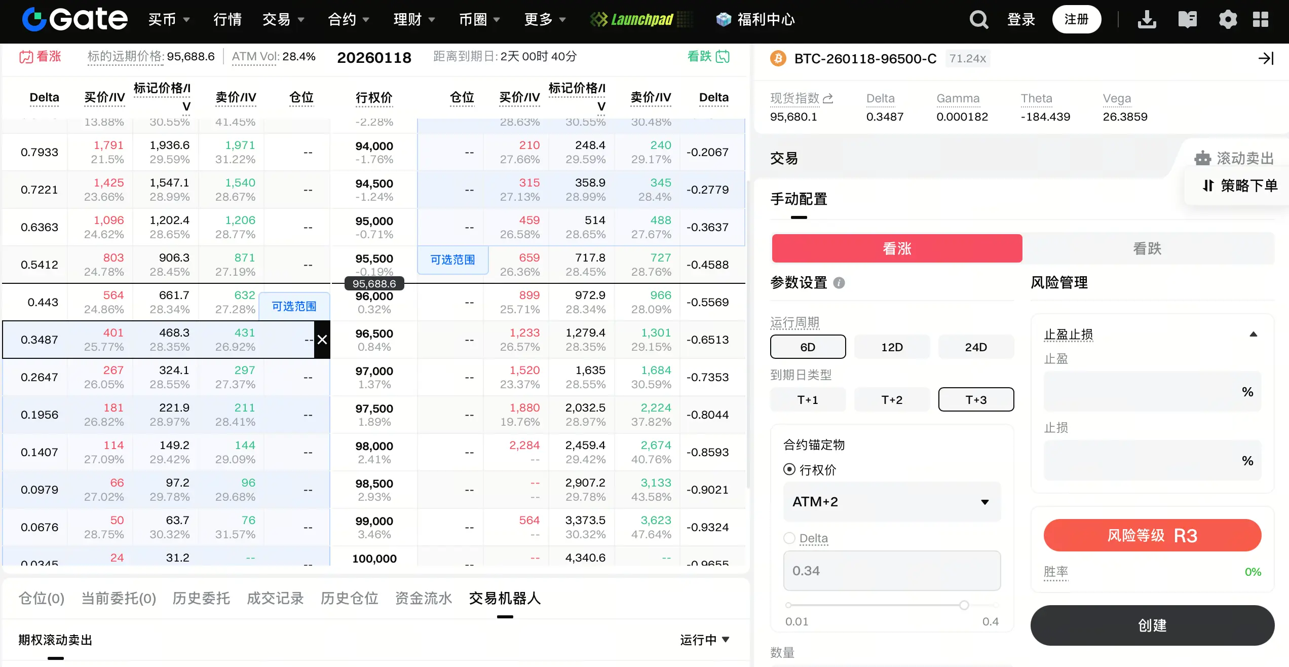 Dengan alat rolling options, pengguna dapat menetapkan aturan pemilihan harga strike (misalnya Delta / Strike), periode kedaluwarsa (T+1 / T+2 / T+3), jumlah penjualan, dan kondisi take profit / stop loss yang dipilih sebelumnya. Sistem akan secara otomatis menjual opsi call dan put setiap periode perdagangan, dan secara seamless melanjutkan ke periode berikutnya setelah kedaluwarsa, mewujudkan eksekusi berkelanjutan dari strategi short strangle. Alat ini juga menyediakan indikator risiko yang jelas, perkiraan margin, dan penjelasan jalur strategi, membantu pengguna memperoleh premi secara lebih stabil sambil mengendalikan risiko, sangat cocok untuk trader yang ingin berpartisipasi jangka panjang dalam pasar sideways dan mengotomatisasi strategi mereka.