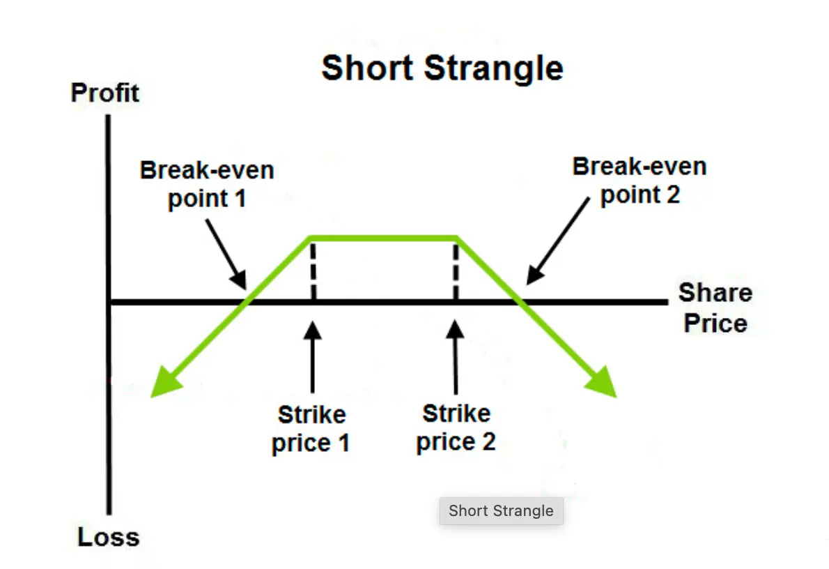 Strategi short strangle adalah menjual opsi call dan put pada aset yang sama, dengan harga strike yang berbeda dan tanggal kedaluwarsa yang sama.
