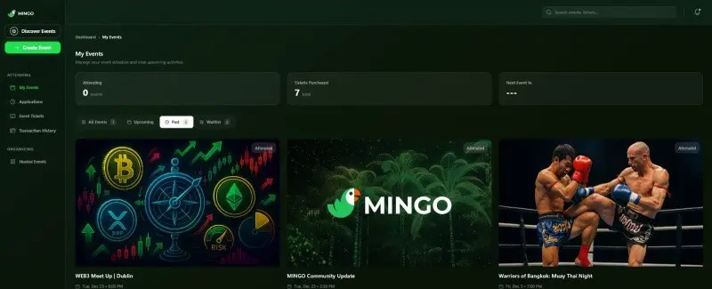 MINGO adalah salah satu pembangun awal di Hedera, memilih jaringan ini untuk mendukung utilitas dunia nyata secara skala besar. Kecepatan, keamanan, keberlanjutan, dan biaya yang dapat diprediksi dari Hedera memungkinkan MINGO Tickets beroperasi secara efektif dari acara akar rumput hingga promosi internasional besar.
