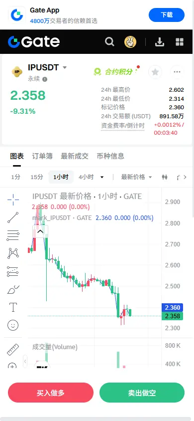 $IP Dalam penurunan volume setelah penurunan harga, perilaku harga menunjukkan pelanggaran kelemahan yang jelas, disertai dengan volume posisi terbuka yang tinggi, mengindikasikan adanya tekanan likuidasi panjang atau tekanan distribusi dari pihak utama.
