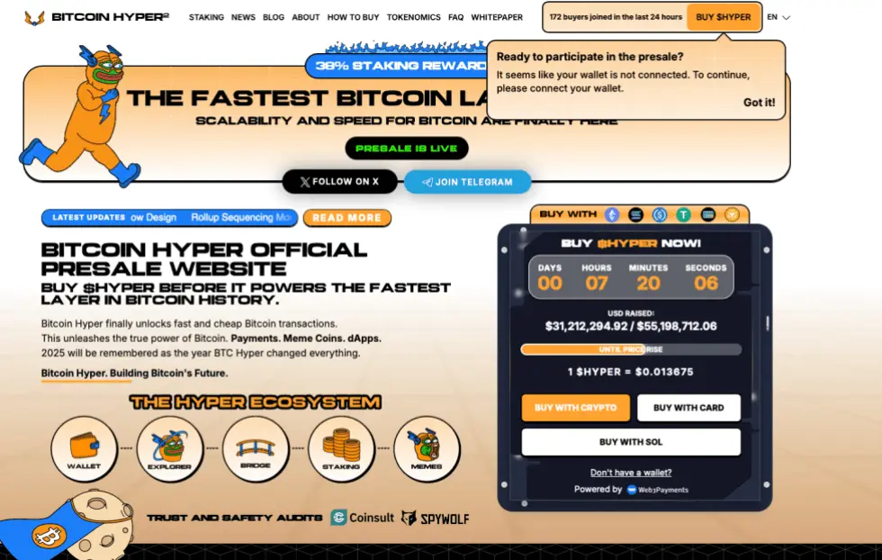 Bitcoin Hyper se présente comme une couche 2 visant à rendre Bitcoin plus fluide, via des transactions plus rapides et des contrats intelligents, en s’appuyant sur une machine virtuelle inspirée de Solana. D’après Claude IA, HYPER est souvent vendu comme le meilleur pari du moment en prévente, censé capter la prochaine vague de finance décentralisée adossée à Bitcoin.