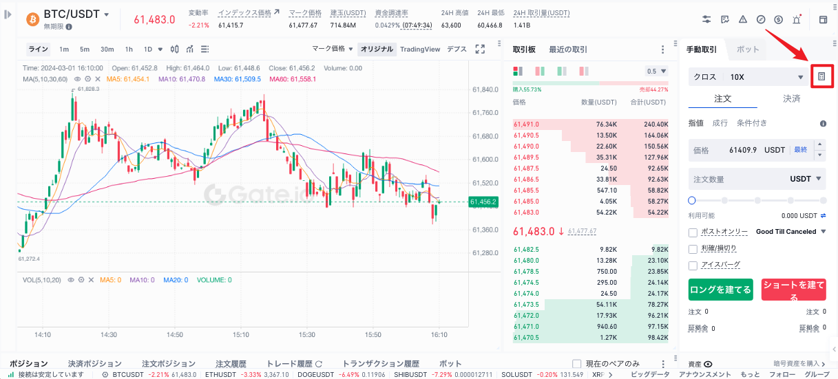 1.先物インターフェースの右上隅にある「電卓アイコン」をクリックして、先物電卓を開きます。