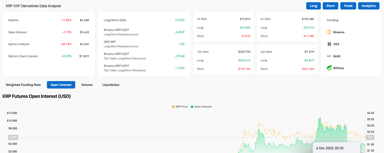 XRPの本日の価格は$2.03付近で取引されており、9月以来続く安定した下落を拡大し、トークンを制御された下降トレンドチャネルのさらに深い位置へと押し込んでいます。価格は最近、短期間の回復試みを維持できず、センチメントが脆弱なまま再び下位サポートレベルを試しています。