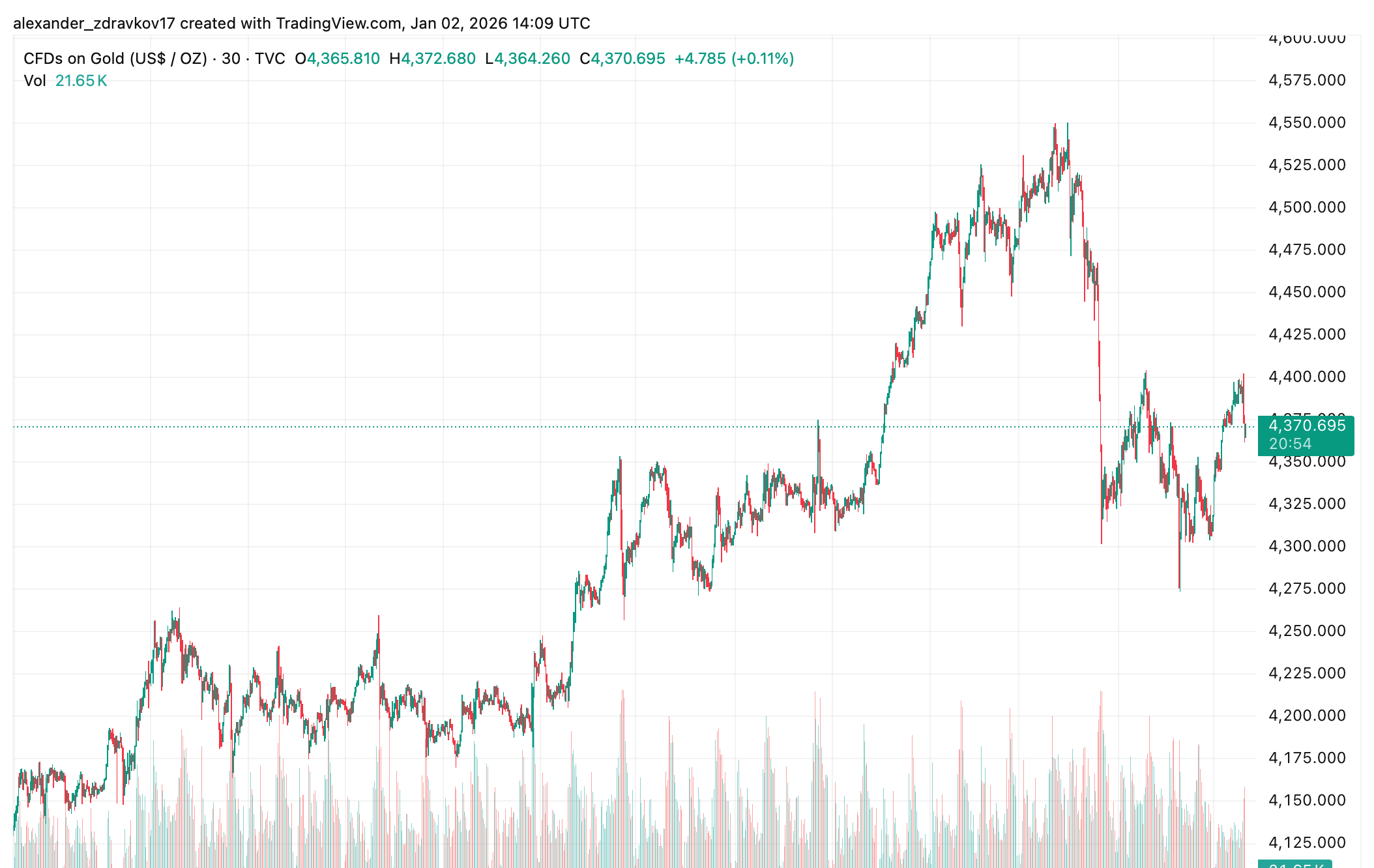 2026年初頭、金塊価格は米国の金利引き下げ期待と構造的に弱いドルの支援を受けて上昇を続けました。金は$4,400の範囲に近づき、銀は再び高パフォーマンスを示し、その高いボラティリティと供給の逼迫を反映しています。