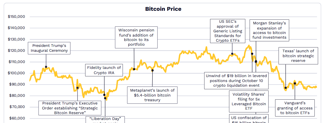 「ビットコインは新しい機関投資資産クラスのリーダーとして成熟している」とARKインベストは述べ、ビットコインの上場投資信託(ETF)や企業のビットコイン保有者が2025年にビットコインの総供給量の8.7%から12%に増加したことを指摘した。