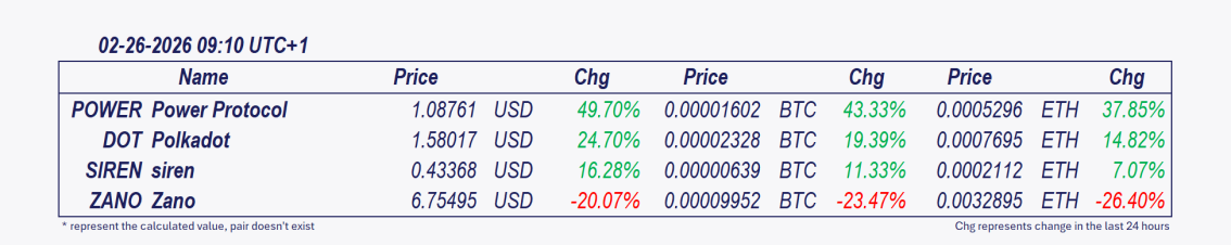 • Power ProtocolとPolkadot: これらの暗号資産は過去24時間で最も好調でした。