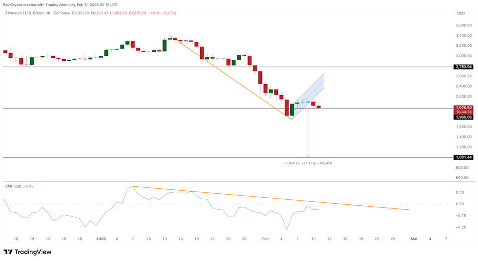 The Ethereum price is down more than 5% over the past few days and has now slipped below a key short-term structure. On February 10, ETH fell under $1,980 after failing to hold a narrow rebound channel. This move followed a sharp decline in DeFi activity and weakening institutional flows. Yet, despite the pressure, large holders have started adding again.