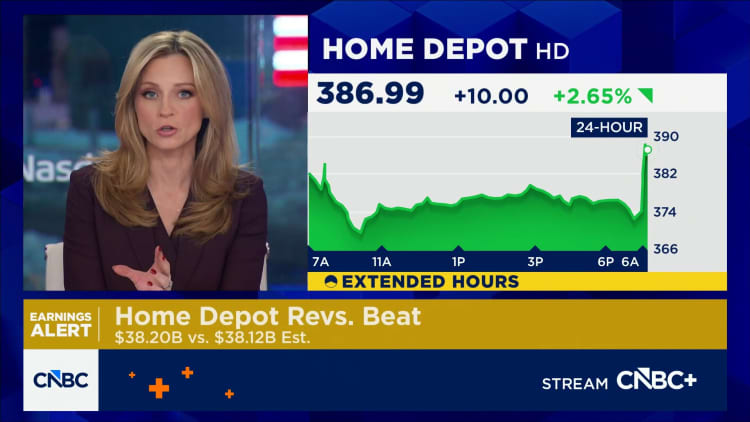 Home Depot tops earnings estimates for the first time in a year as demand for projects remains muted