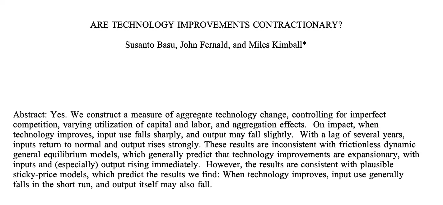 Others cite studies by Kimball, Basu, and Fernald (1998), which suggest that technological shocks historically tend to be positive supply-side stimuli—short-term employment adjustments occur, but long-term output gains far outweigh job destruction.
