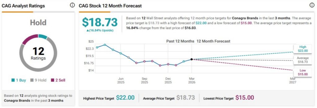 Turning to Wall Street, CAG earns a Hold consensus rating based on one Buy, nine Hold, and two Sell ratings assigned in the past three months. The average stock price target of $18.73 implies 16.8% upside potential from current levels.