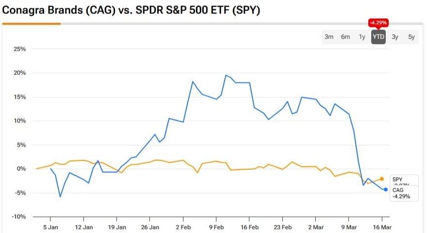 Conagra Brands CAG +1.62% ▲ is currently the highest-yielding stock in the S&P 500 (SPX), making it a compelling buy for investors seeking a high-payout anchor amid an increasingly volatile market. Boasting a roughly 8.5% dividend yield, this consumer staples giant offers a level of defensive stability that “exciting” tech stocks simply cannot match in today’s geopolitical and AI-driven uncertainties.