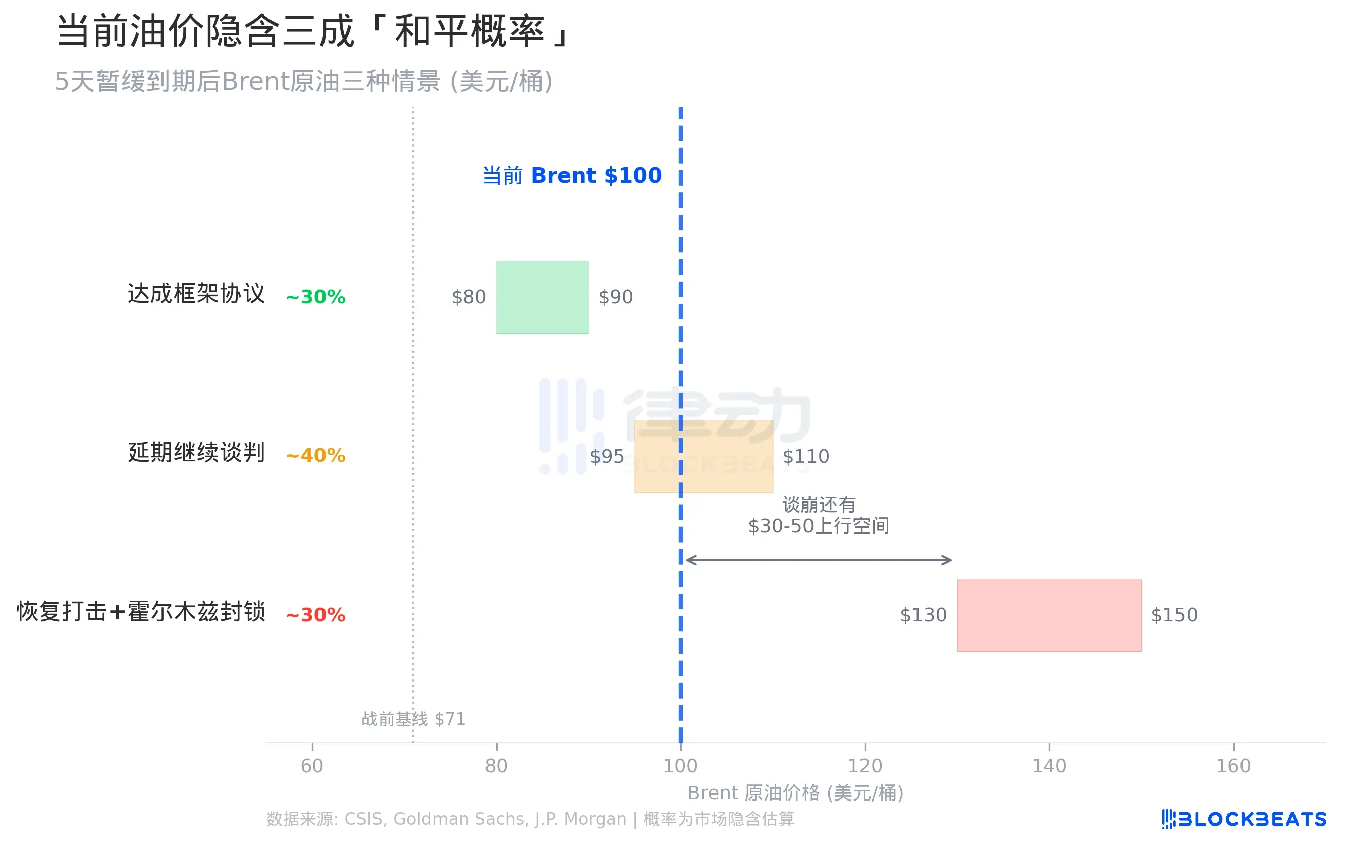 Third, resumption of strikes and continued blockade of the Strait of Hormuz. According to CSIS scenario models, if Iran responds to strikes by expanding attacks on Gulf oil facilities, Brent could spike to $130-$150. Goldman Sachs’s extreme scenario is more aggressive: if the blockade lasts 60 days and Middle Eastern production decreases by 2 million barrels per day, oil prices could surpass the 2008 high of $147.
