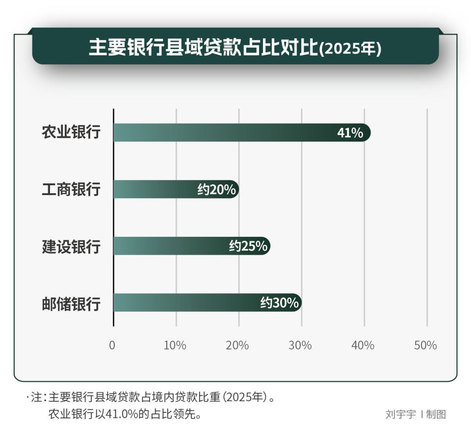 In its 2025 performance communiqué, CCB explicitly stated that “county-level deposit and loan growth rates are higher than the industry average.” For CCB, which is strong in infrastructure and corporate business, this represents a landmark strategic shift. ICBC, more directly, stated in its annual report that it is “accelerating the extension of its expertise in urban finance into county-level markets,” and will form a new digital inclusive finance model around county-level areas. As for Postal Savings Bank’s president Lu Wei, he said plainly at the performance briefing: over 70% of its outlets are located in county-level and rural areas; it is the only state-owned major bank with deep coverage of county and rural markets. (See “Reinvesting in wealth management: what are the odds for the ‘most downscaled bank’ to win?”) This description is highly similar to ABC-related statements.