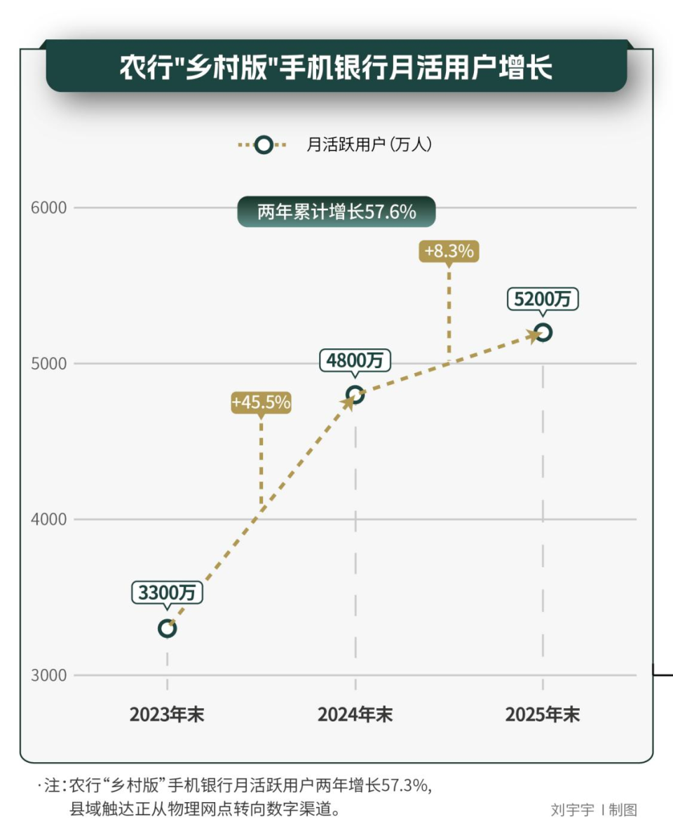 With dual engines of digital outreach and offline collaboration, the monthly active users (MAU) of its “rural version” mobile banking rose from 33 million at the end of 2023 to 52 million at the end of 2025—an increase of nearly 58% over two years. In 2025, ABC newly set up 1,742 farmer-benefit service stations. These “lightweight outlets” work in synergy with mobile banking. ABC also built an online-and-offline integrated delivery system: customers can submit service requests from any touchpoint, and the system intelligently assigns the request to the most suitable delivery channel based on the complexity of the business and customer preferences.