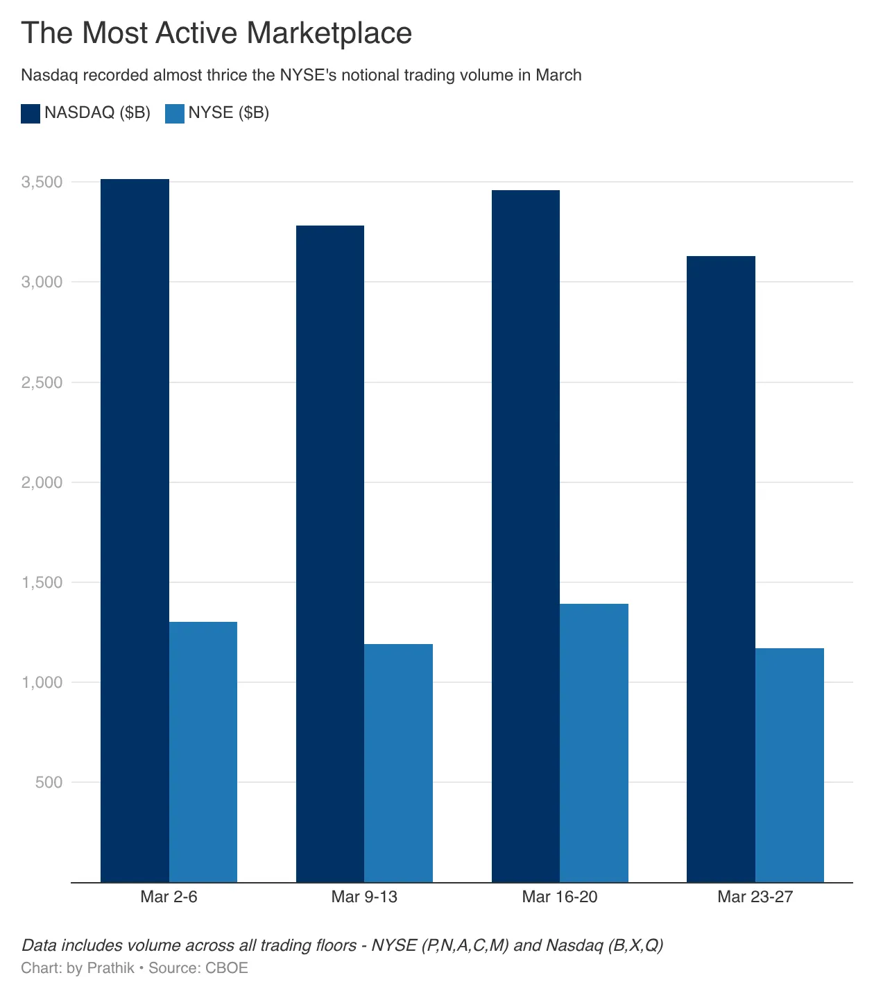 The day after S&P announced this news, the U.S. Securities and Exchange Commission (SEC) approved Nasdaq’s application to trade and settle certain stocks in token form. Nasdaq is one of the most active trading venues in the world; its nominal trading volume typically exceeds the New York Stock Exchange (NYSE), which has the largest market capitalization among exchanges globally.