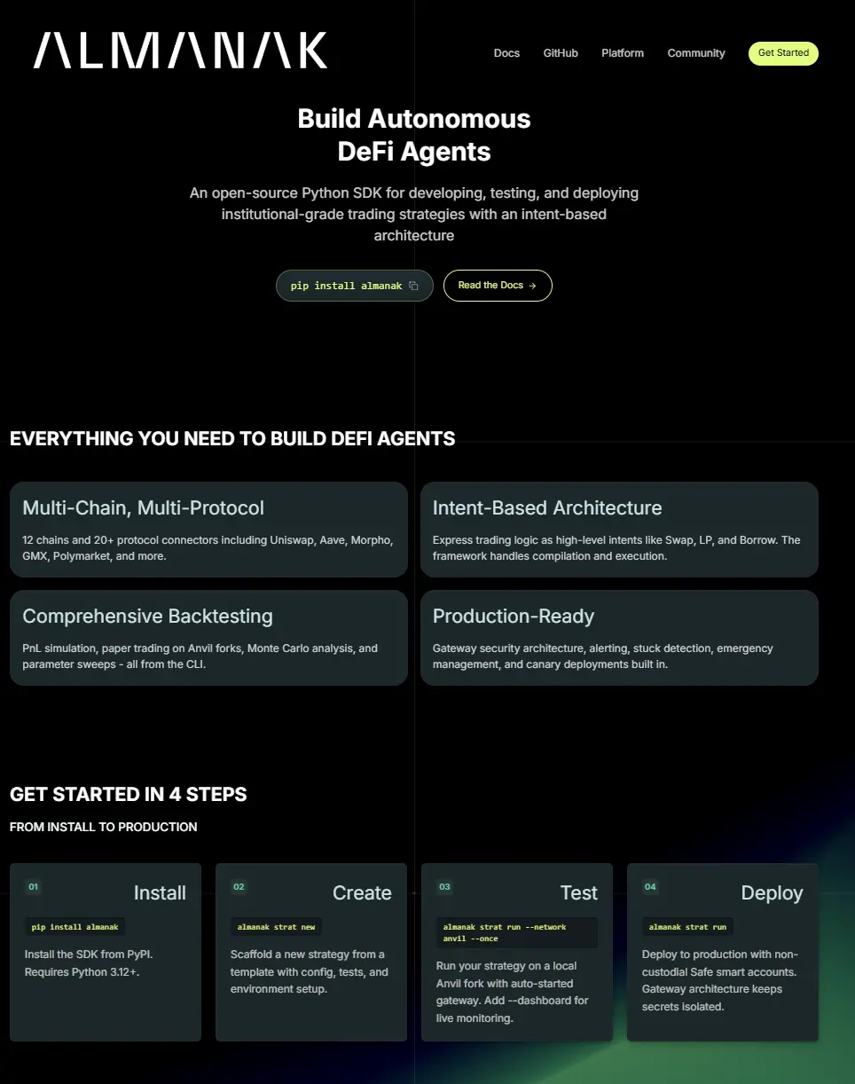 Figure 5: Almanak platform homepage display