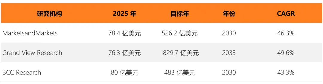 From the perspective of global market size, multiple research institutions have highly consistent growth forecasts for the AI Agent track: