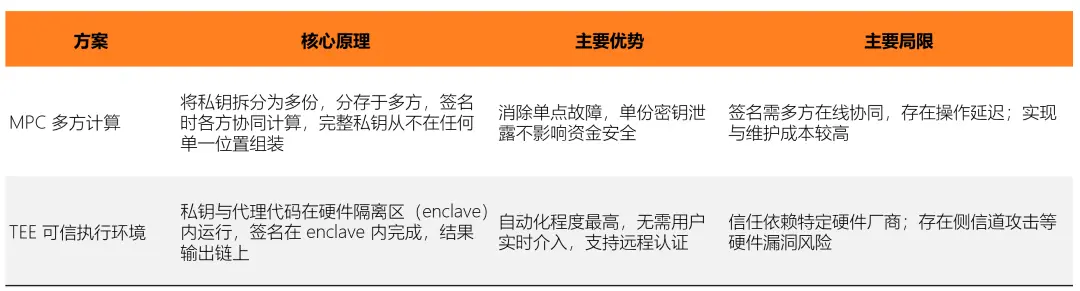 At present, the industry’s two main approaches for private key security management are MPC (multi-party computation) and TEE (trusted execution environment). Both emphasize different aspects in their security model, automation level, and engineering complexity.