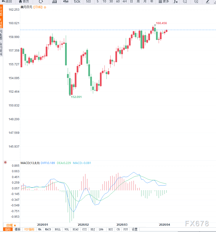 From a technical perspective, on the daily chart, USD/JPY remains within an upward-trending channel. Since the February low, it has been steadily climbing, with the highs and lows gradually moving higher, and the trend structure remains intact. The current price is approaching the prior high zone, creating clear technical suppression. The key resistance is located in the 160.00–160.50 range; if it breaks effectively, it could open up additional upside room. On the downside, support is at 158.00, with further support at 156.50. Momentum indicators show that the bulls still hold the upper hand, but the pace of the advance has slowed.