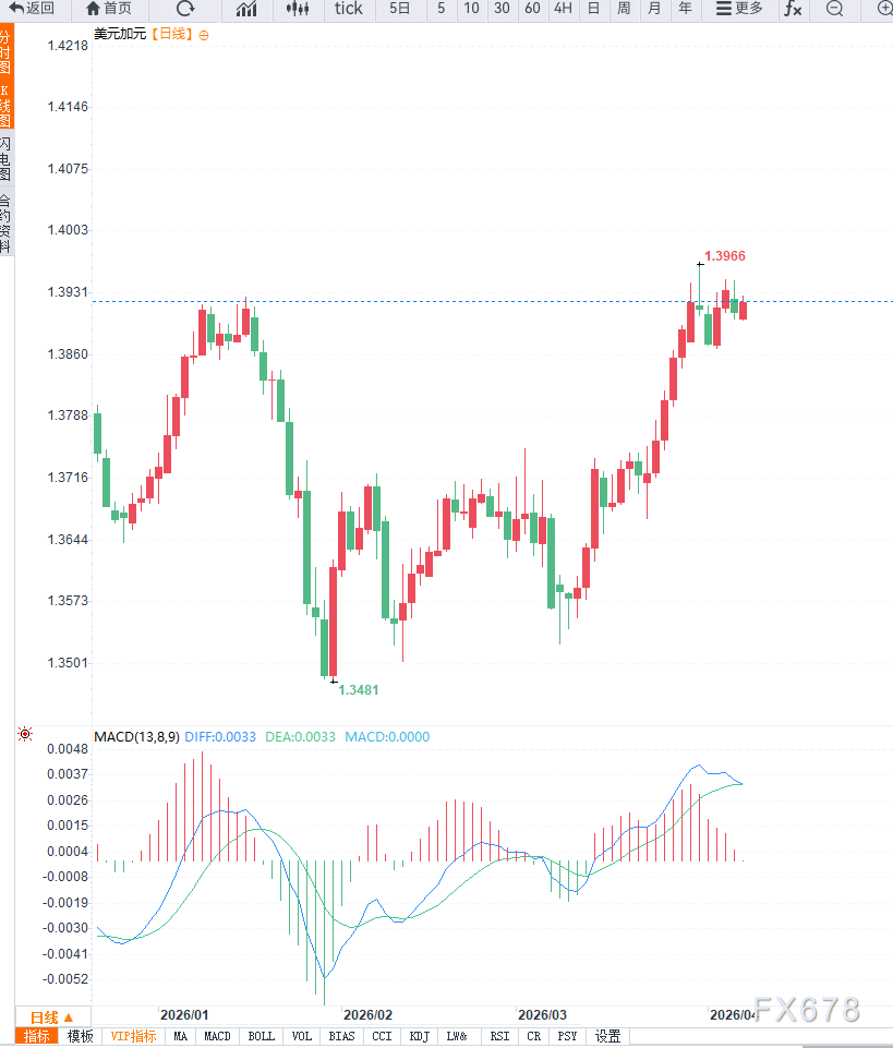From a technical perspective, on the daily timeframe, USD/CAD is still generally in a choppy upward channel; however, the current price is approaching the area of previous highs and faces some resistance. The key resistance level is at the 1.4000 round-number mark, with further resistance at 1.4050. Support is at 1.3850, and further support at 1.3780. The moving-average system shows the medium-term trend remains bullish, but short-term momentum has weakened somewhat.