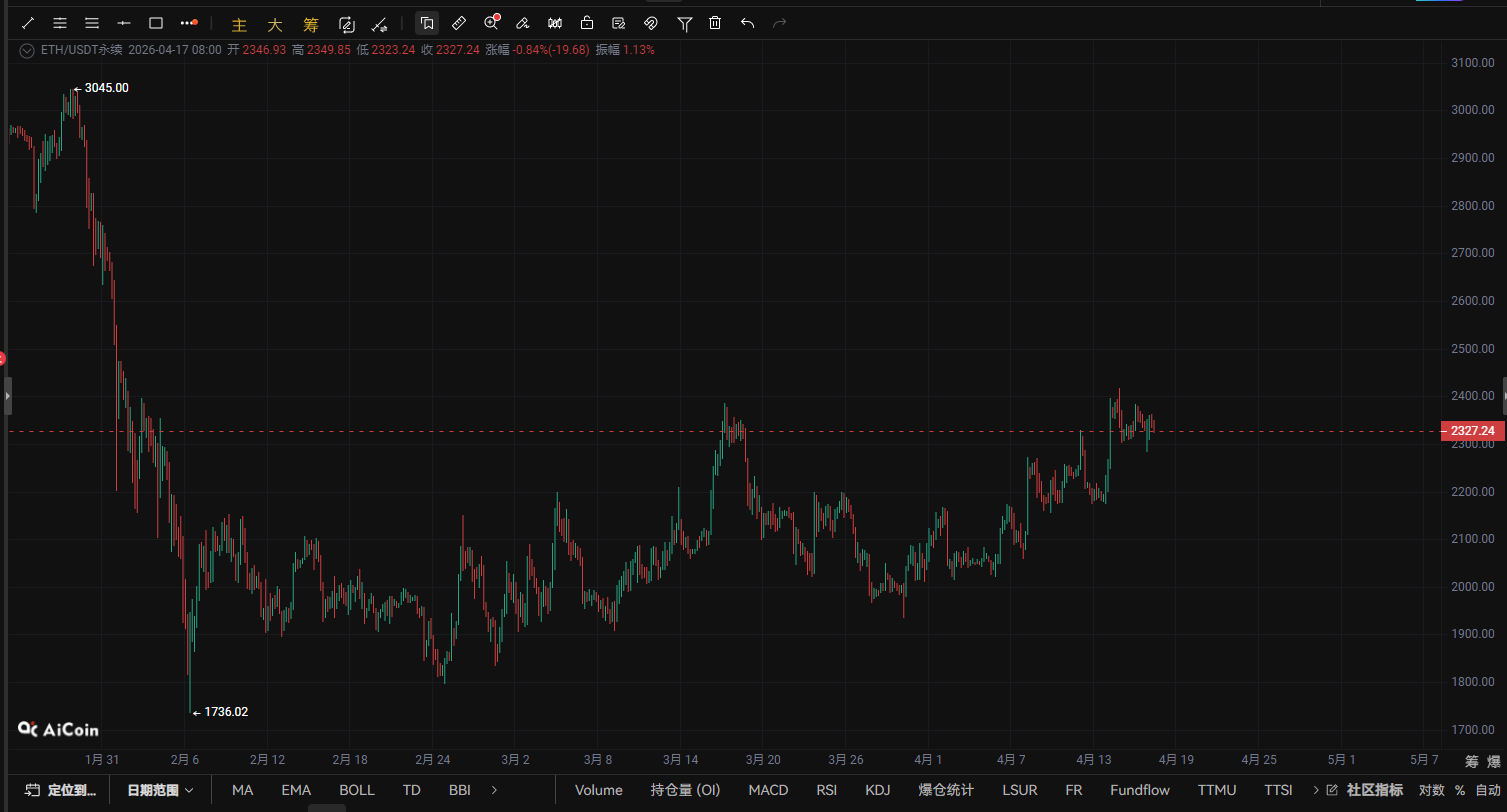 ETH今日の動き分析|2327の重要なサポートは維持できるか、強気と弱気の攻防全周期のテクニカルガイド(4月17日)
