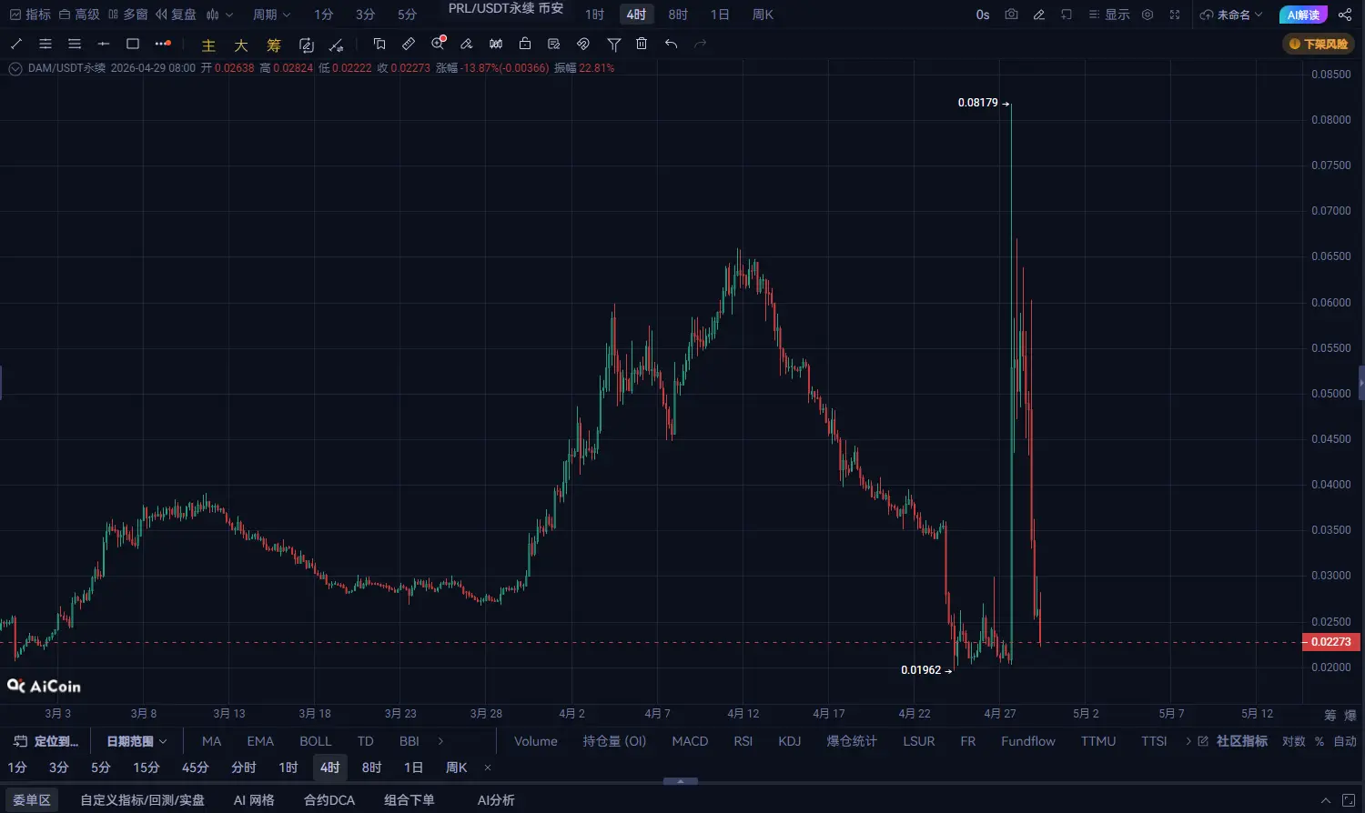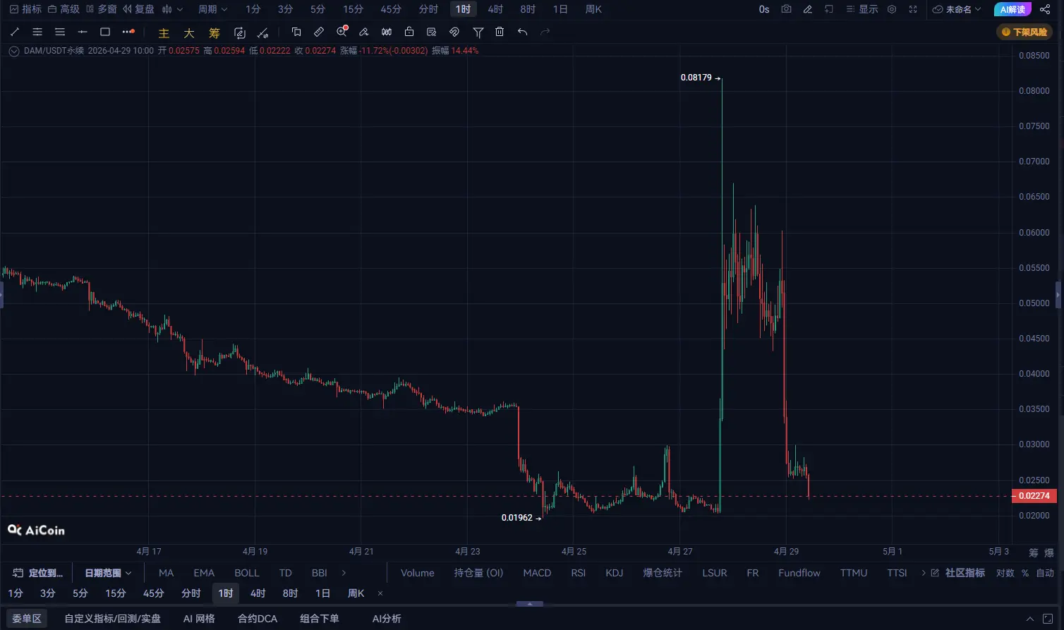 Primeiro, a conclusão: DAM já não está mais em uma fase de oscilação, mas sim em uma estrutura de continuação de fraqueza evidente. O ritmo de baixa de curto prazo é claro, pertencente à “fase de queda por inércia após rompimento”, com maior tendência a testar o suporte para baixo durante o dia.