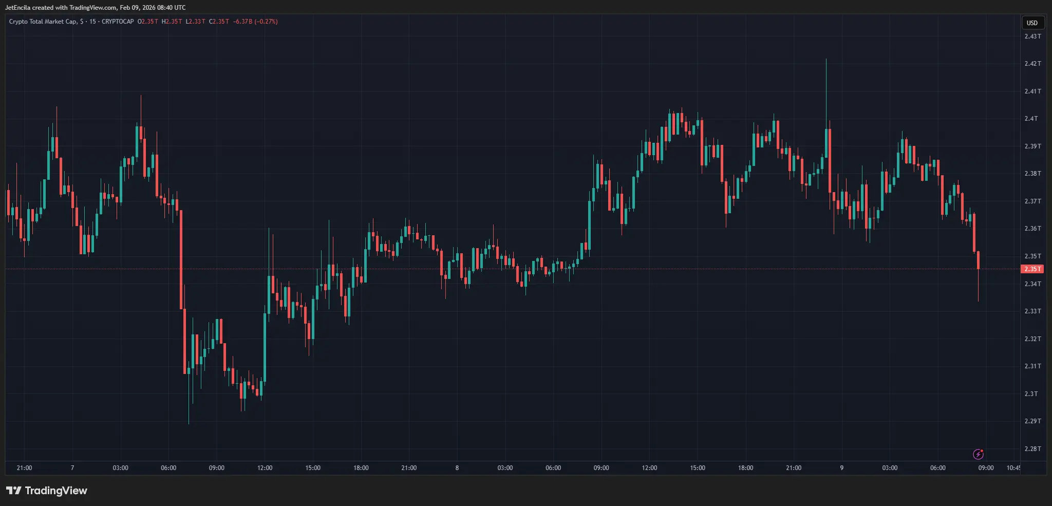Capitalização total do mercado de criptomoedas a 2,35 trilhões de dólares no gráfico diário: TradingView