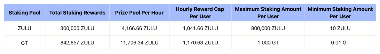 How to Participate: Log in to your Gate account and complete Identity Verification → Navigate to Gate Launchpool → Hold at least 10 ZULU/0.01 GT → Click “Stake”.