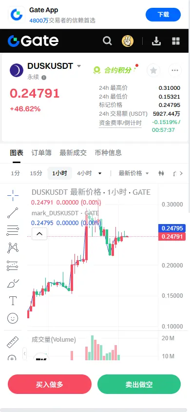 $DUSK Daily increase exceeds 47%, accompanied by over 1.1 billion in massive trading volume and significant growth in open interest. This is a typical capital-driven breakout. After breaking out, the price did not quickly fall back, indicating strong absorption by buyers, and market sentiment shifted from hesitation to FOMO. The key support has moved up to the previous high area; as long as volume remains, a pullback is a healthy reset.