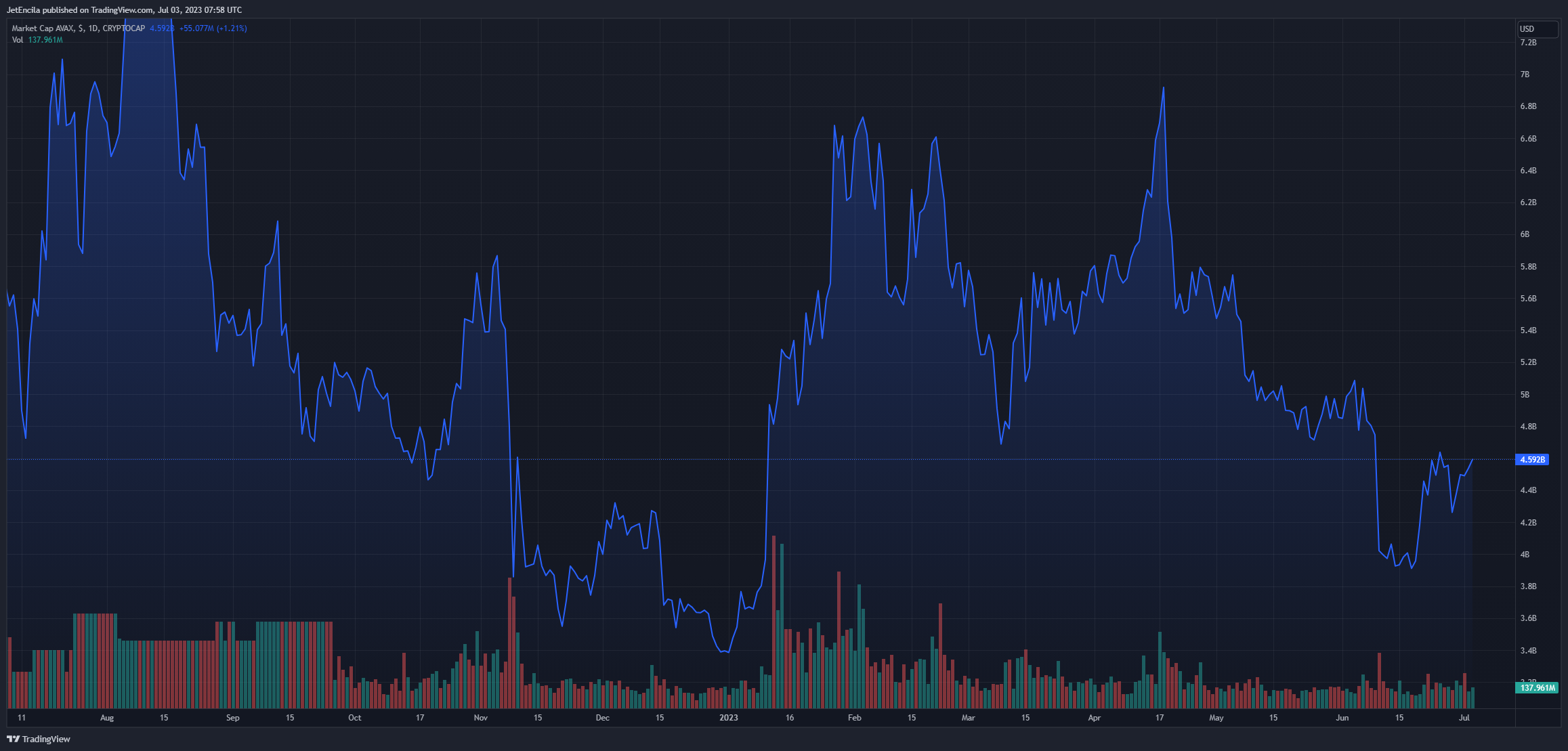 AVAX market cap below the $5 billion mark. Chart: TradingView.com