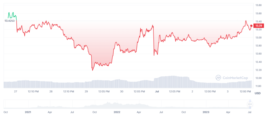 The current AVAX price on CoinGecko stands at $13.26, showcasing a 2.9% rally over the last 24 hours. However, despite this recent uptick, the asset has also experienced a 0.9% decline in the past seven days.