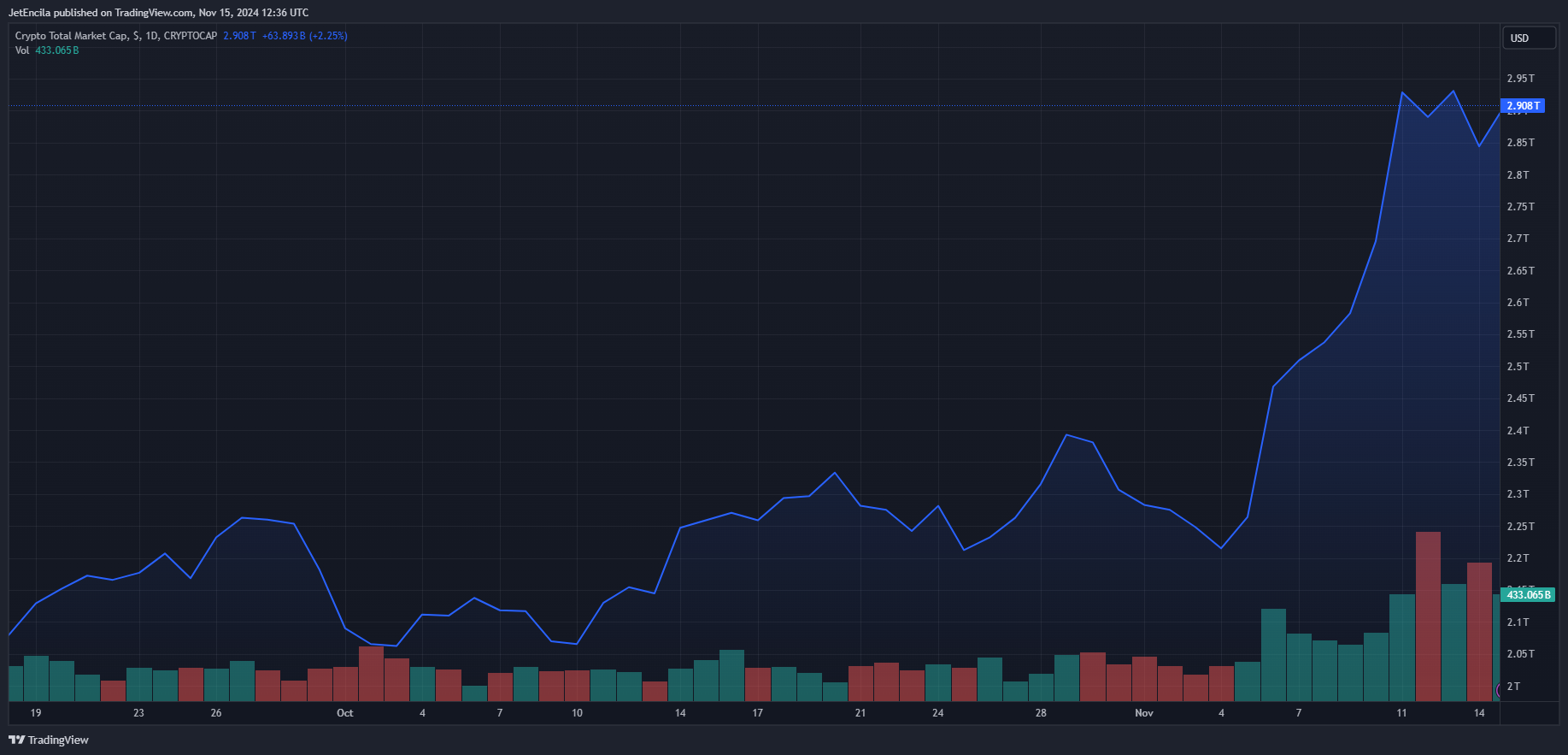 Total crypto market cap currently at $2.9 trillion. Chart: TradingView### Novogratz Not Confident On Government’s Decision To Add BTC As Reserve Asset