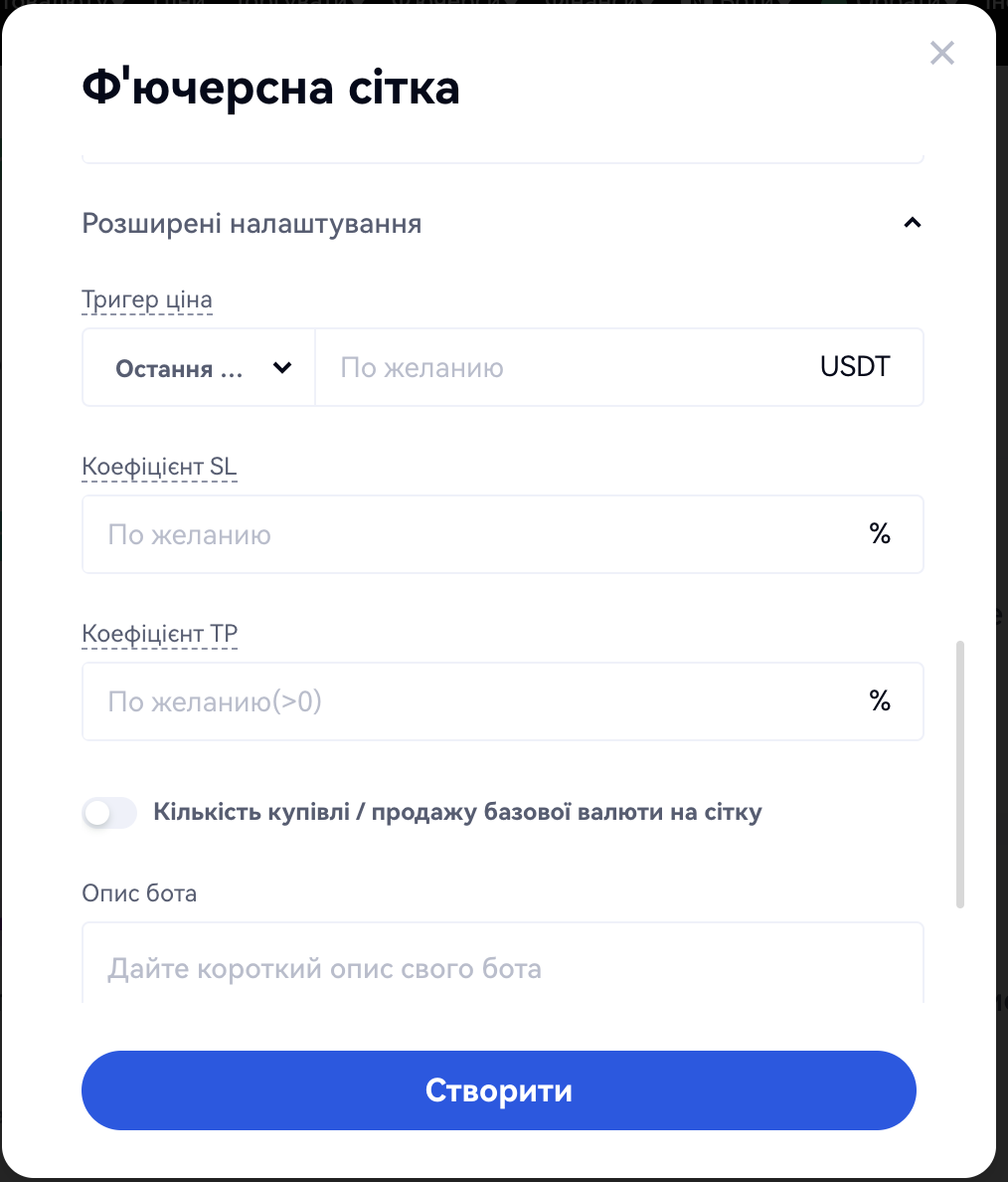 Інструкції для фючерсної сітки