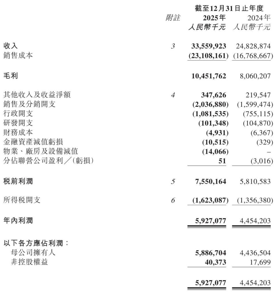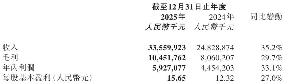 Lợi nhuận gộp của năm 2025 là 10,45 tỷ nhân dân tệ, tăng 29,7% so với 8,06 tỷ nhân dân tệ cùng kỳ.