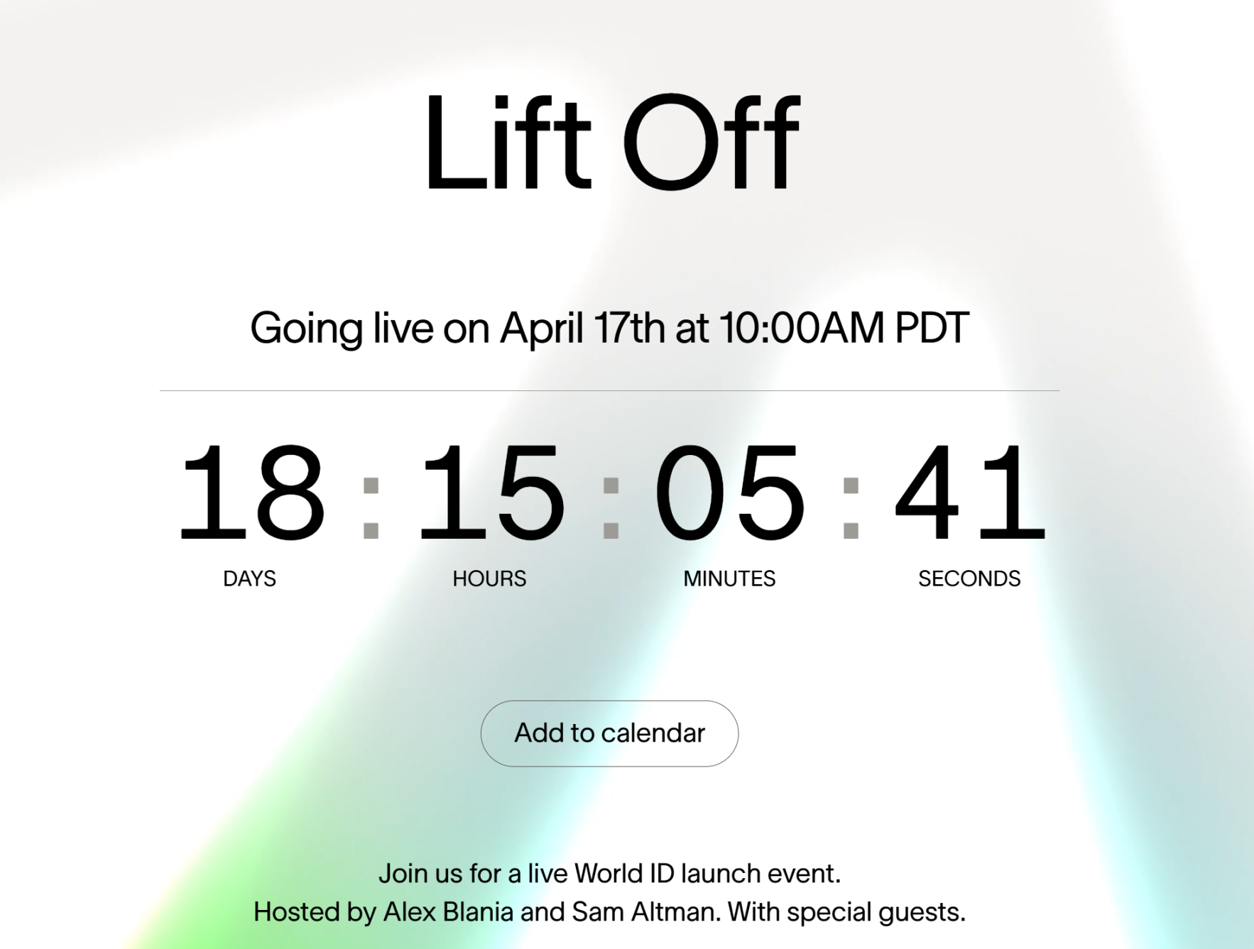 Ngày 17 tháng 4, World sẽ tổ chức sự kiện ra mắt toàn cầu “Lift Off” về World ID tại San Francisco; Sam Altman sẽ trực tiếp tham dự và đồng chủ trì cùng CEO của world là Alex.