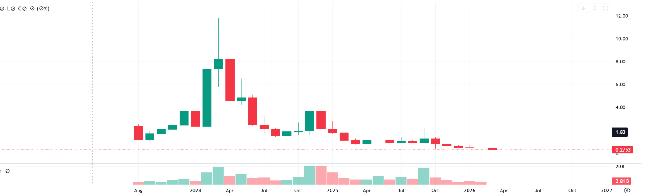 Suốt cả năm 2025, giá WLD dao động đi đi lại lại trong biên độ 0.5-1.5 USD. Dù tốc độ tăng tỷ lệ sử dụng mống mắt vẫn được triển khai đều đặn, nhưng vẫn chưa đạt kỳ vọng ban đầu; sự tăng trưởng người dùng và độ nóng của câu chuyện đã xuất hiện sự tách biệt rõ rệt. Bước sang năm 2026, WLD tiếp tục lao dốc, gần đây từng chạm mức thấp kỷ lục mới 0.2433 USD; hiện đang dao động quanh 0.27 USD, với mức giảm tích lũy so với ATH hơn 97%.