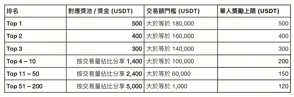 - 獎勵將於活動結束後 14 個工作日內劃轉至獲獎者帳戶。