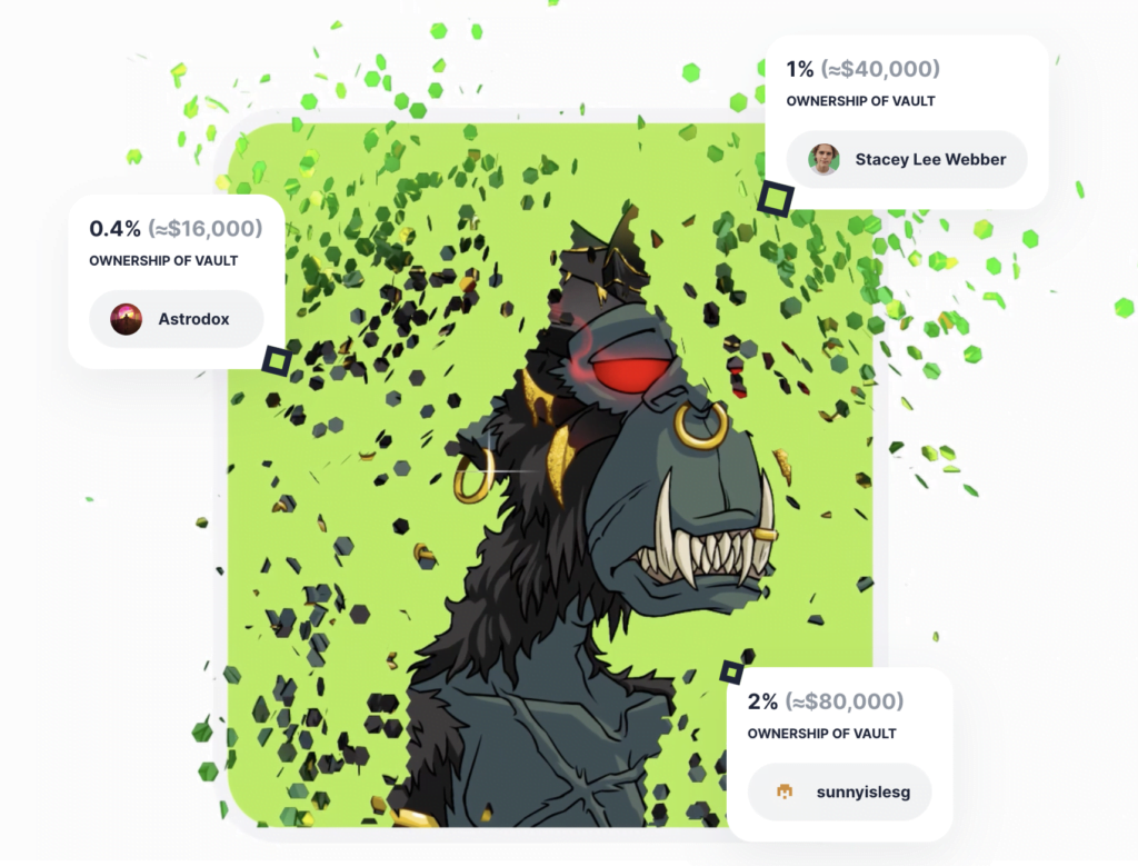智能合约将NFT保存在一个保险库中,并铸造代表所有权份额的代币,这些代币可以交易或兑换。