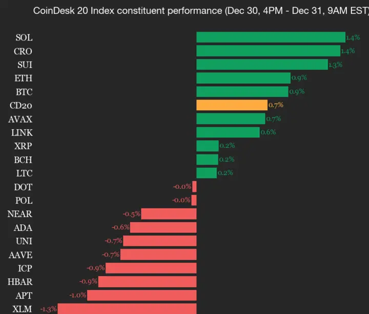 CoinDesk 20表现更新:Solana (SOL)上涨1.4%,引领指数走高