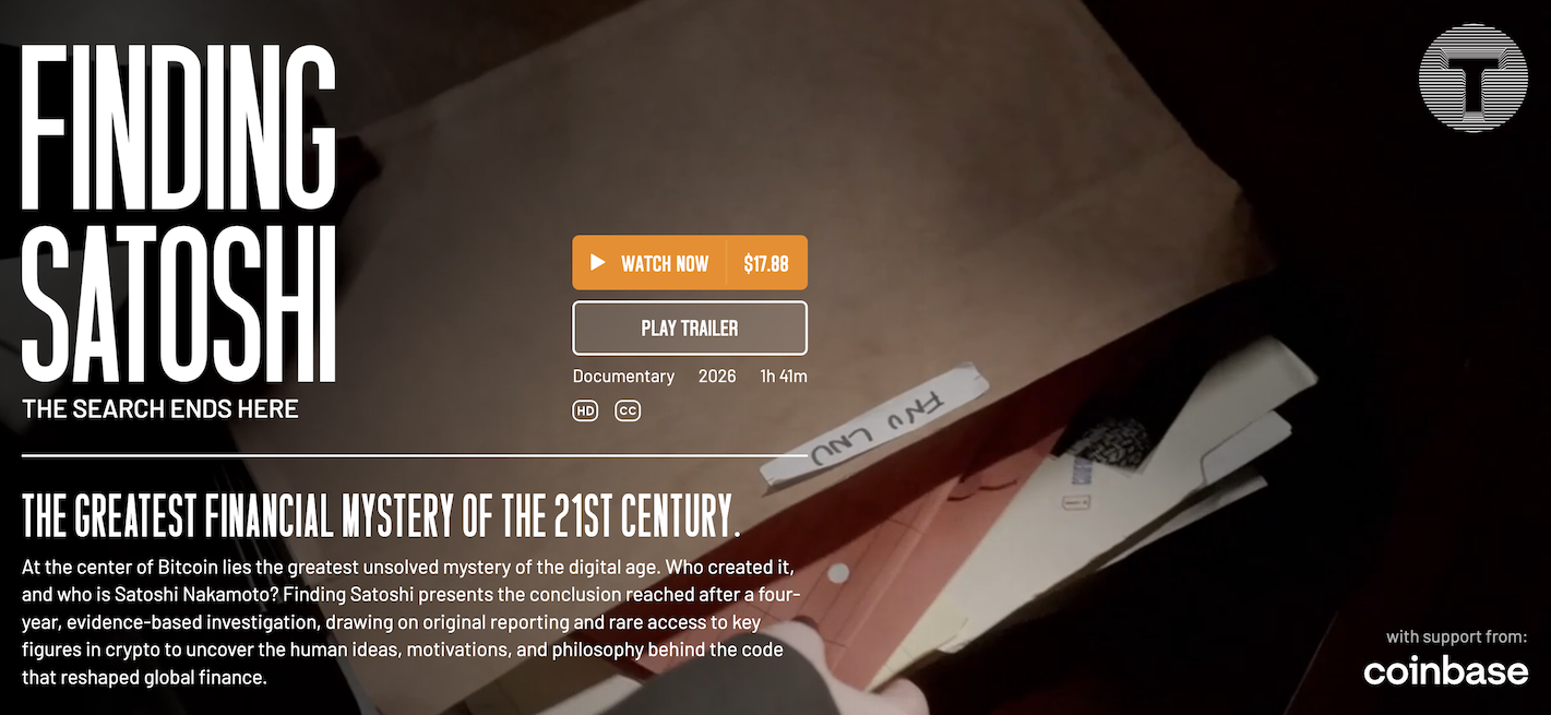 自 2009 年比特币(Bitcoin)问世以来,其创始人“中本聪”(Satoshi Nakamoto)的真实身份始终是 21 世纪最大的金融谜团。尽管多年期间有无数调查报道、学术分析与猜测,这位改变全球金融版图的神秘人物依然隐身于数字迷雾之后。2026 年 4 月 22 日,全新纪录片《Finding Satoshi》(中本聪寻踪)正式发布。