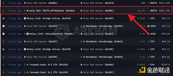 1、接收:0x8B1(同样经由 Tornado Cash 注资),接收原始盗取的 116,500 枚 rsETH