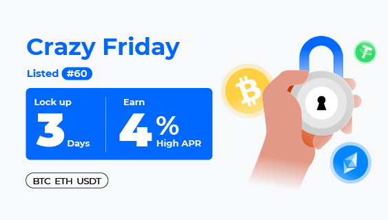 تسمح هذه المرحلة من Crazy Friday بقفل BTC/ETH/USDT لمدة قصيرة تصل إلى 3 أيام. يصل معدل الفائدة السنوية إلى 4% وإجمالي حصة الاشتراك محدودة وسيتم تقديمها على أساس أسبقية الحضور!