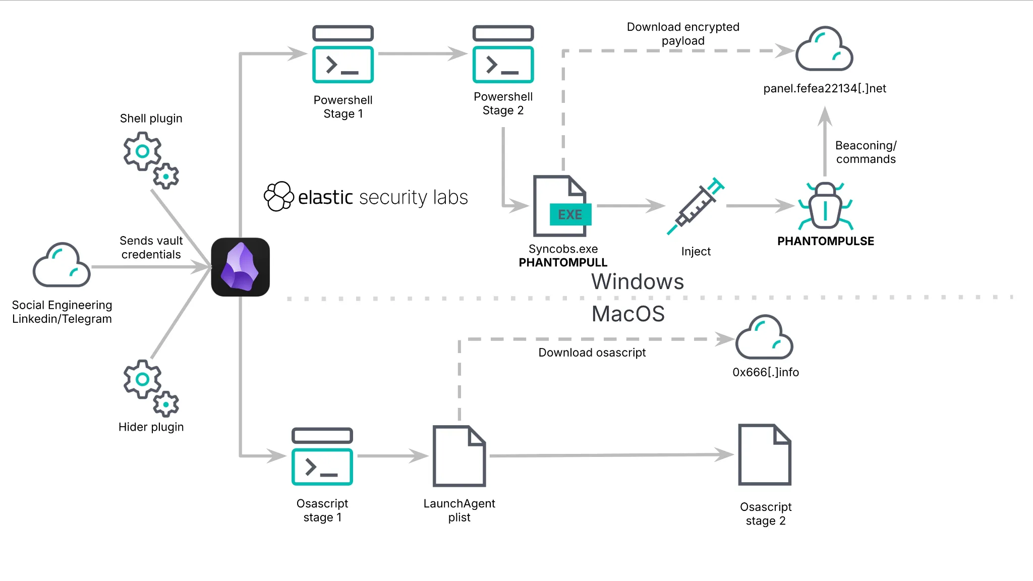 Эксперты Elastic Security Labs обнаружили кампанию, в которой мошенники используют в качестве ловушки приложение для заметок Obsidian. Конечная нагрузка вируса представлена ранее неизвестным трояном PHANTOMPULSE.