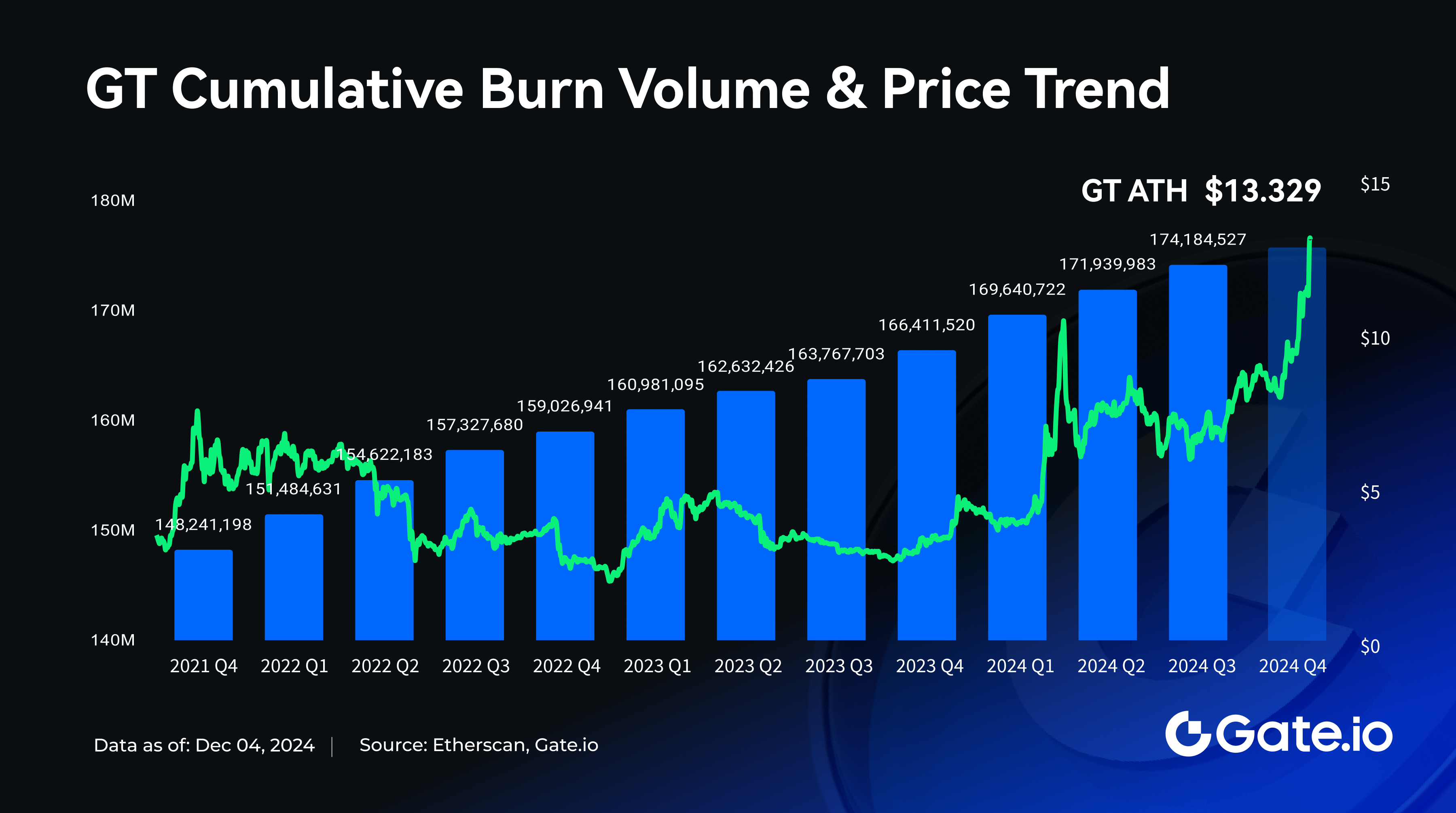 In addition to its diverse use cases, the ongoing burn mechanism has played a key role in enhancing GT’s intrinsic value. Since 2019, through regular burns, the total supply of GT has been reduced by approximately 58.06% from its initial amount of 300 million tokens. Over the past three years, GT has consistently carried out quarterly token burns, totaling 31,338,915.10 tokens, valued at approximately $189,839,265.347. This strategy has successfully reduced the circulating supply to under 100 million GT, meeting the initial goal, with plans to continue the burn strategy in the future. (For more details, please check our announcement on Gate Token (GT) On-Chain Burn for Q3 2024