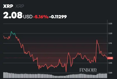 Au moment de la rédaction, le XRP se négociait à 2,08 $, en hausse d’environ 0,6 % au cours des 24 dernières heures, mais en baisse d’environ 5 % sur la semaine.